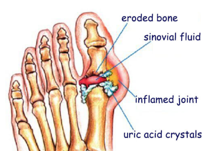 통풍이란 질병은 몸 속 요산이라는 물질이 쌓이면서 그 요산이 우리 몸에서 염증 반응을 일으켜 몸에서 관절염과 심한 통증, 또 콩팥이 망가지는 질환이자 자가 염증질환으로 알려져 있으며 주로 발가락, 발등과 같은 관절에 나타나 통풍이 생긴 경우 다리를 절단하고 싶을 정도로 아주 극심한 통증을 유발하는데 더 무서운 점은 치료시기를 놓치면 말기신부전, 뇌졸중, 심근경색 등 생명을 위협할 수 있는 합병증을 유발합니다.