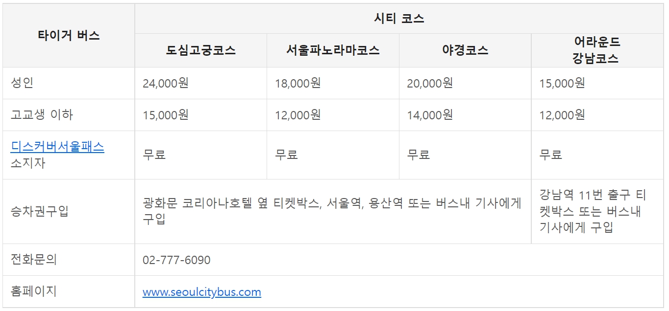 서울시티투어버스 요금정보