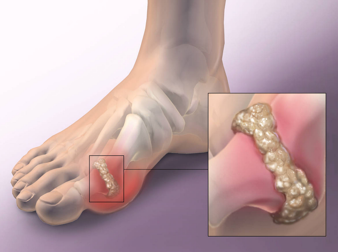 - 요산 결정이 관절 주변에 축적되어 통풍을 유발하는 경우, 요산 결정을 제거해야 합니다.