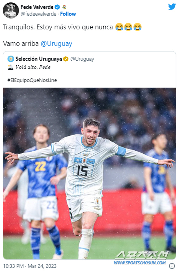 지난 월드컵에서 승부를 가리지는 못했지만 결과적으로 16강 진출을 우리나라가 하면서 우르과이는 눈물을 훌릴 수밖에 없었습니다. 현재 피파랭킹에서도 16위로 25위인 우리나라보다 높은 우루과이와 상대전적에서도 1승 2무 6패로 열세를 보이고 있습니다. 우루과이가 지난 일본과의 평가전에서 발베르데가 선제골을 넣었음에도 1대 1로 비기며 승부를 가리지 못했던 만큼 우루과이 역시 우리나라와의 승부에 진검을 가지고 나올 것으로 보입니다.